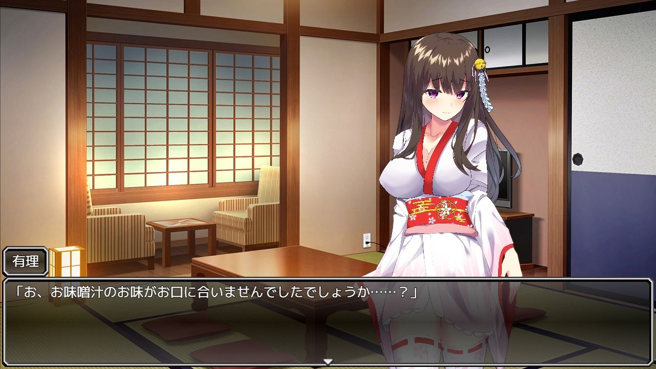 買収を渋る若女将にえっちを強要し、精神的に追い込んで旅館を身売りさせるゲームです。旅館内を探索して旅館の悪評となるネタを集め、若女将に謝罪エッチを強要しよう!