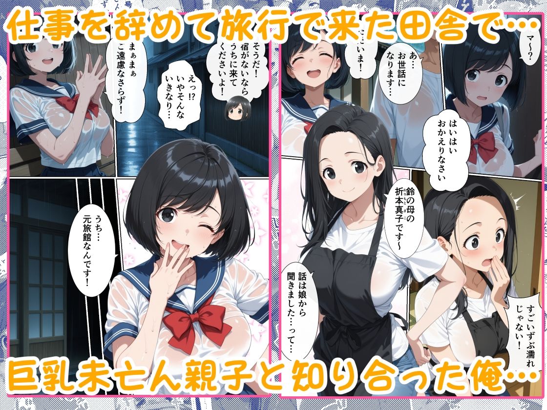 仕事を辞めて旅行で来た田舎で知り合ったのは巨乳の未亡人とその娘!