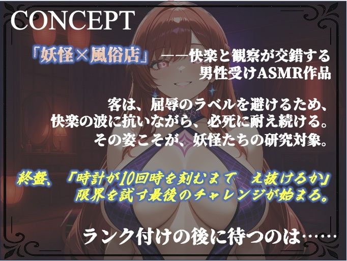 訪れた者は、絶品の美女に出会い、極上奉仕を味わうと同時に――知らぬ間に妖の視線に晒され、自らのランクを判定されていく。